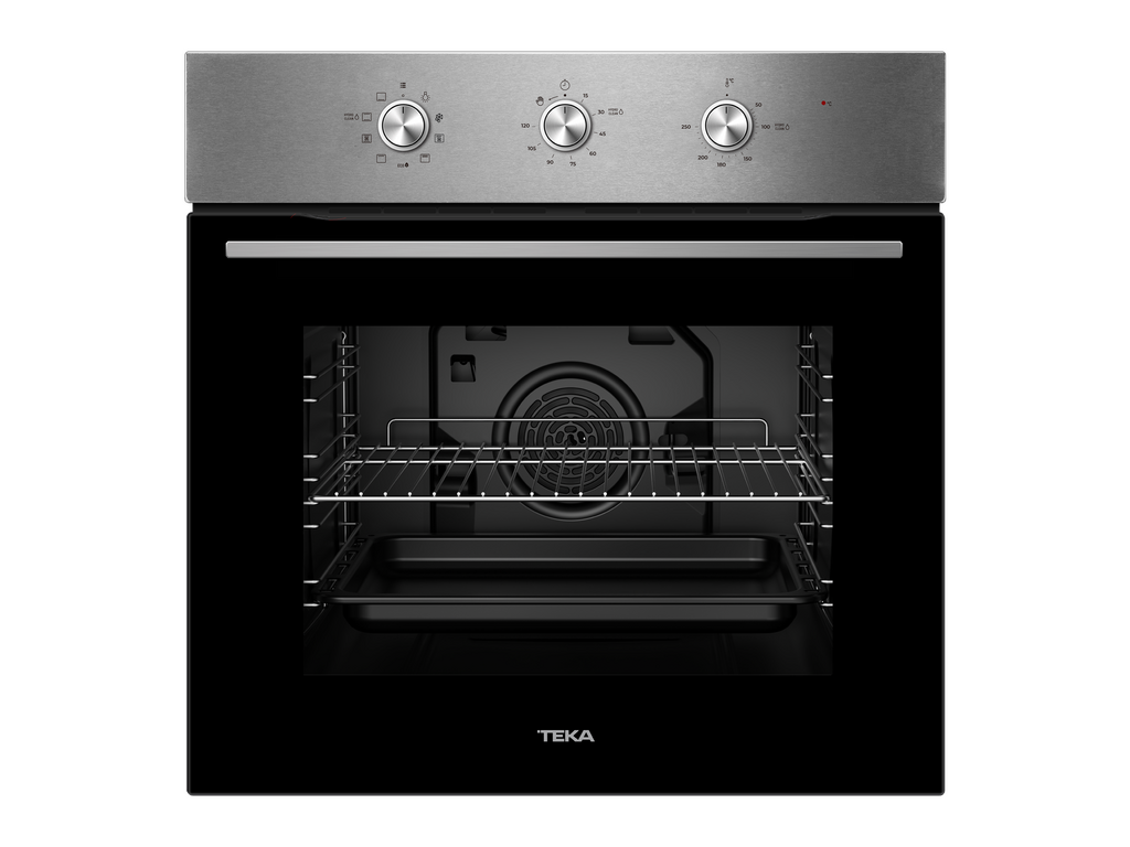 Forno multifunções - 7 funções de cozinhado Sistema de limpeza Teka Hydroclean®PRO Painel de comandos Touch Control com programação de início e fim de cozinhado Porta de vidro duplo Bandeja profunda esmaltada e grelha c/ retenção de segurança Saída de vapores pela parte superior da porta Cavidade interior esmaltada Suportes laterais cromados, 5 alturas de cozinhado Classificação energética A