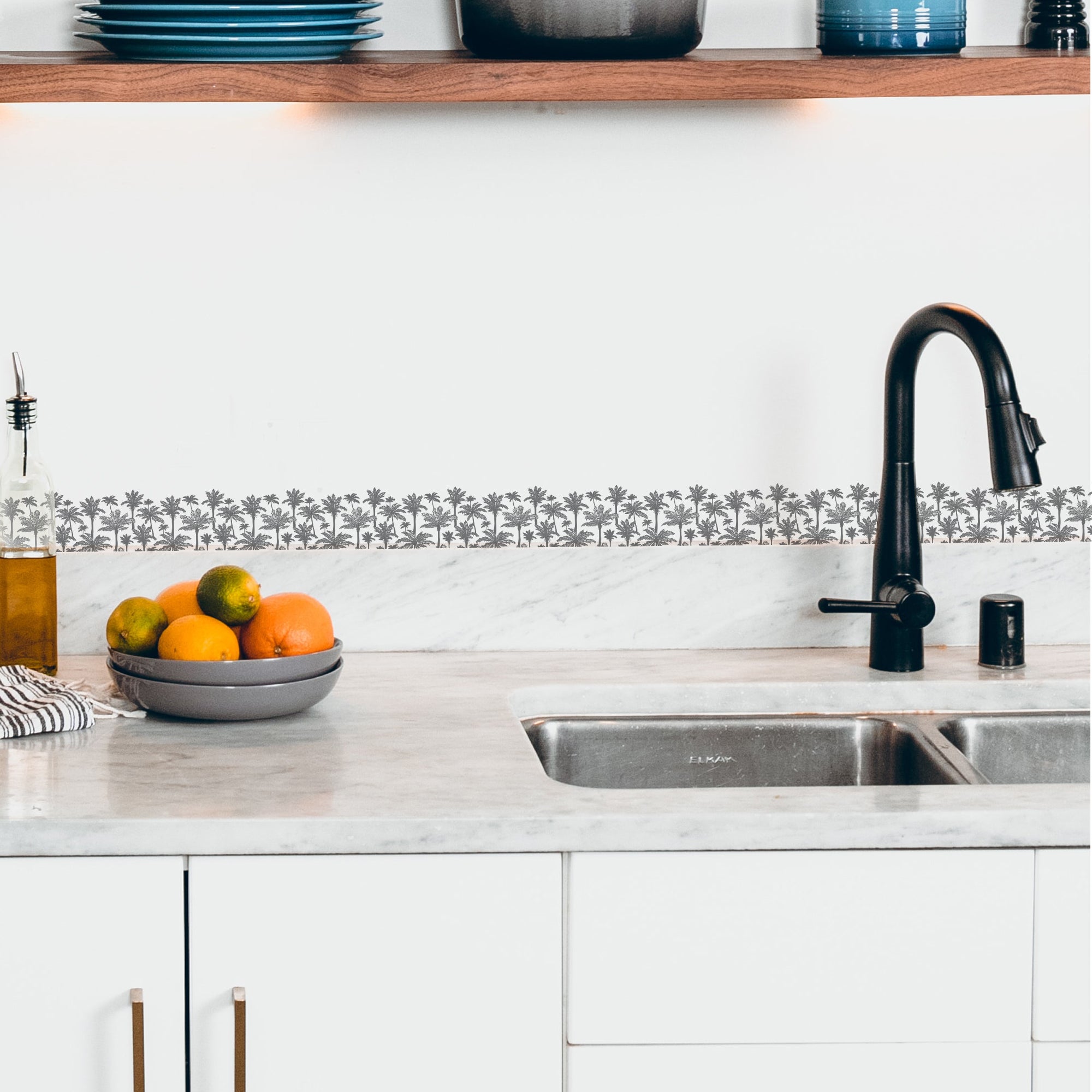 Friso decorativo, friso adesivo cinza cinza, padrão de palmeira cinza, 5 cm x 300 cm