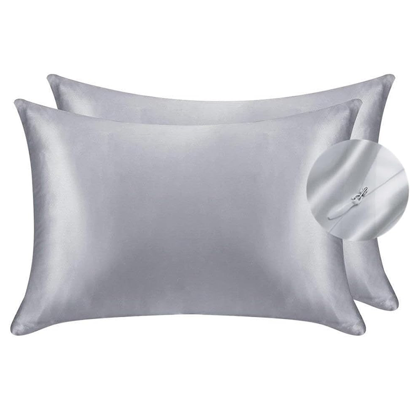 Fronha de cetim sedoso para cabelo e rosto - Conjunto de 2 - Antirrugas - Zíper invisível - 50 x 75 cm