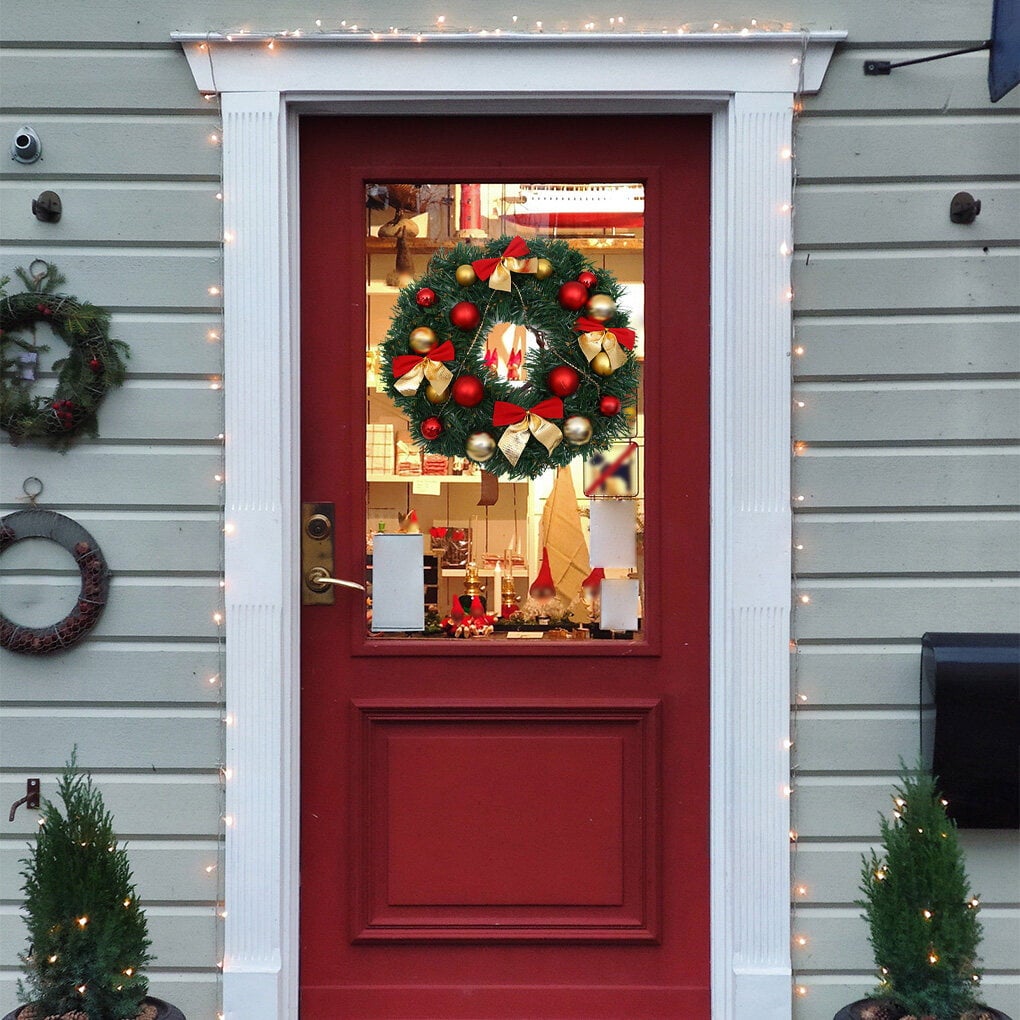 Guirlanda de natal de 30cm com enfeites e arco, guirlanda de natal, guirlanda de porta, decoração de natal para escadas, portas, jardim de árvores