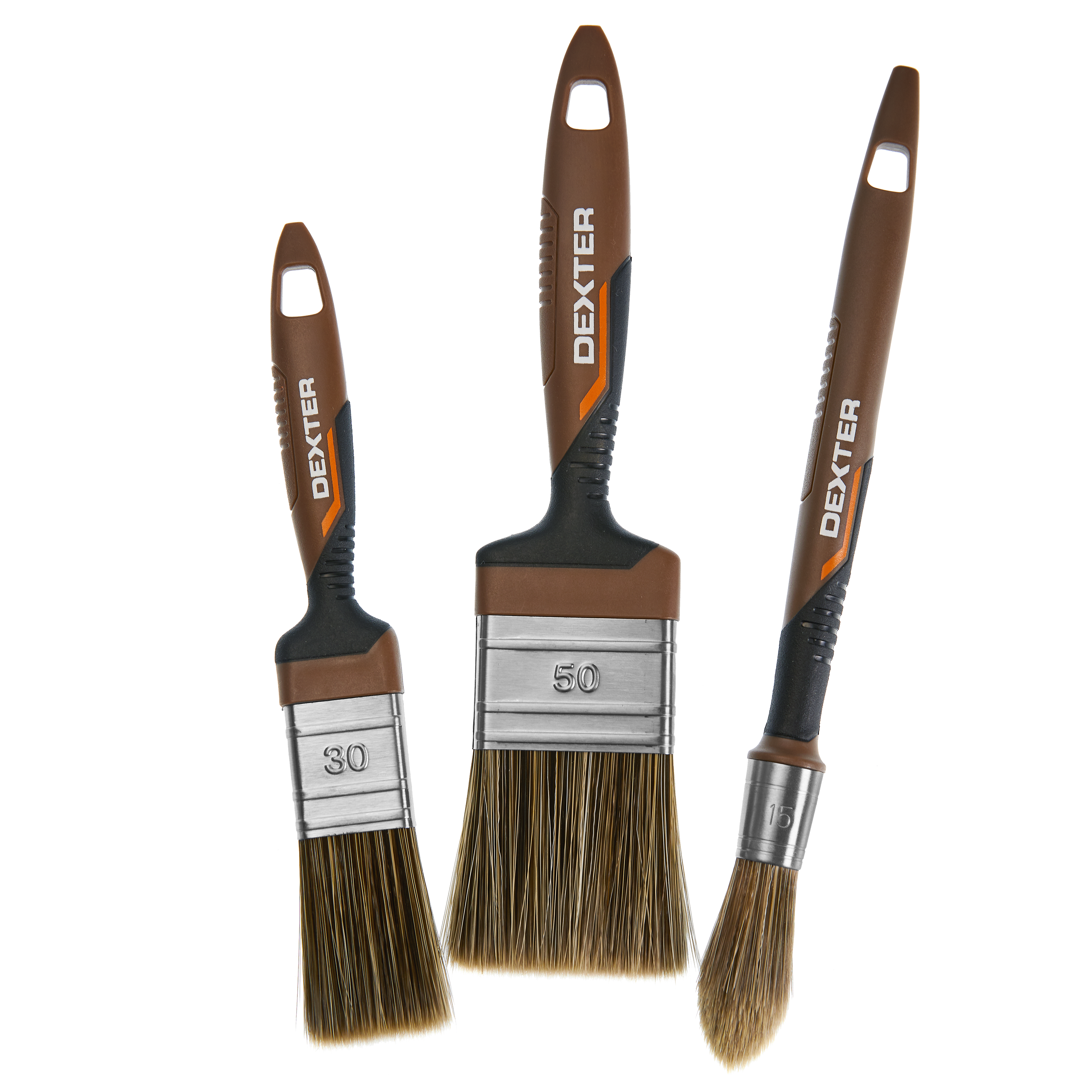 Conjunto de pincéis para envernizar, tingir e lubrificar seus suportes de madeira. 2 pincéis planos e 1 pincel rechampir para cantos e áreas de difícil acesso. Kit 3 pincéis DEXTER UNIVERSAL. Material da fibra 100% seda sintética e cabo em polipropileno. Material 100% reciclado. Durabilidade e resistência.