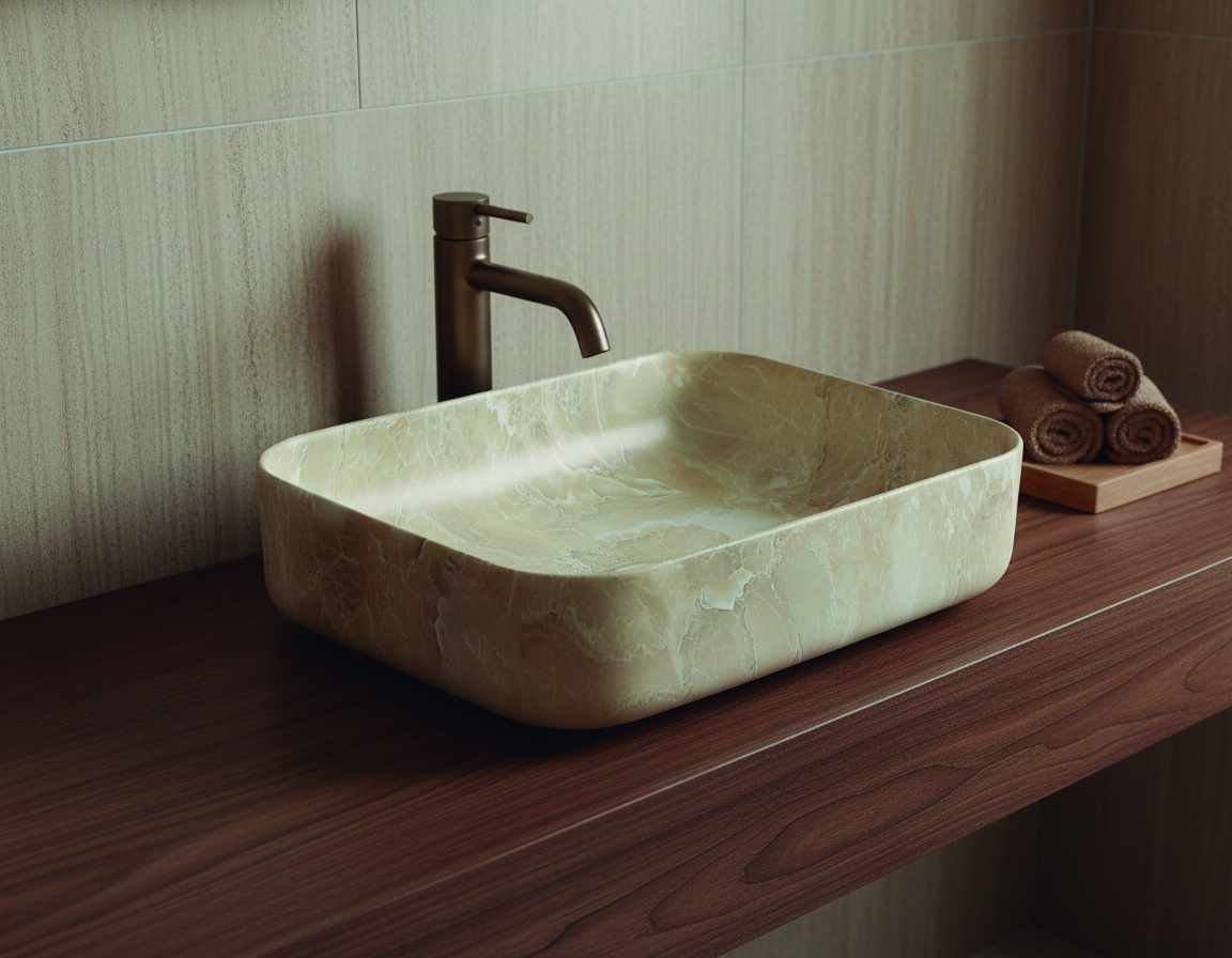 Lavatório de porcelana DALLAS RECTANGULAR bege 500x390x130 mm