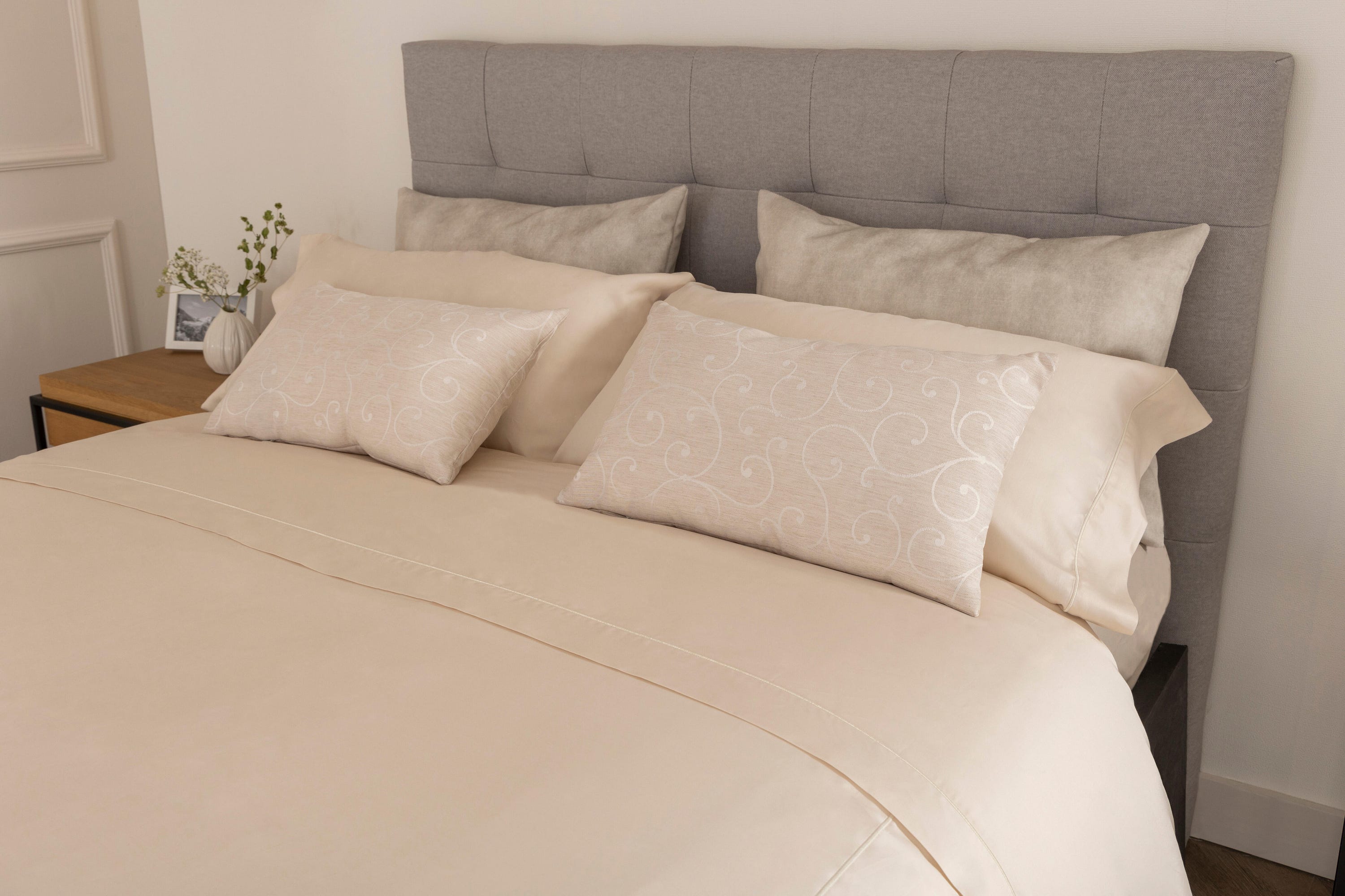 Lençol de cima Bordón INSPIRE algodão 300 fios marfim cama 135 cm