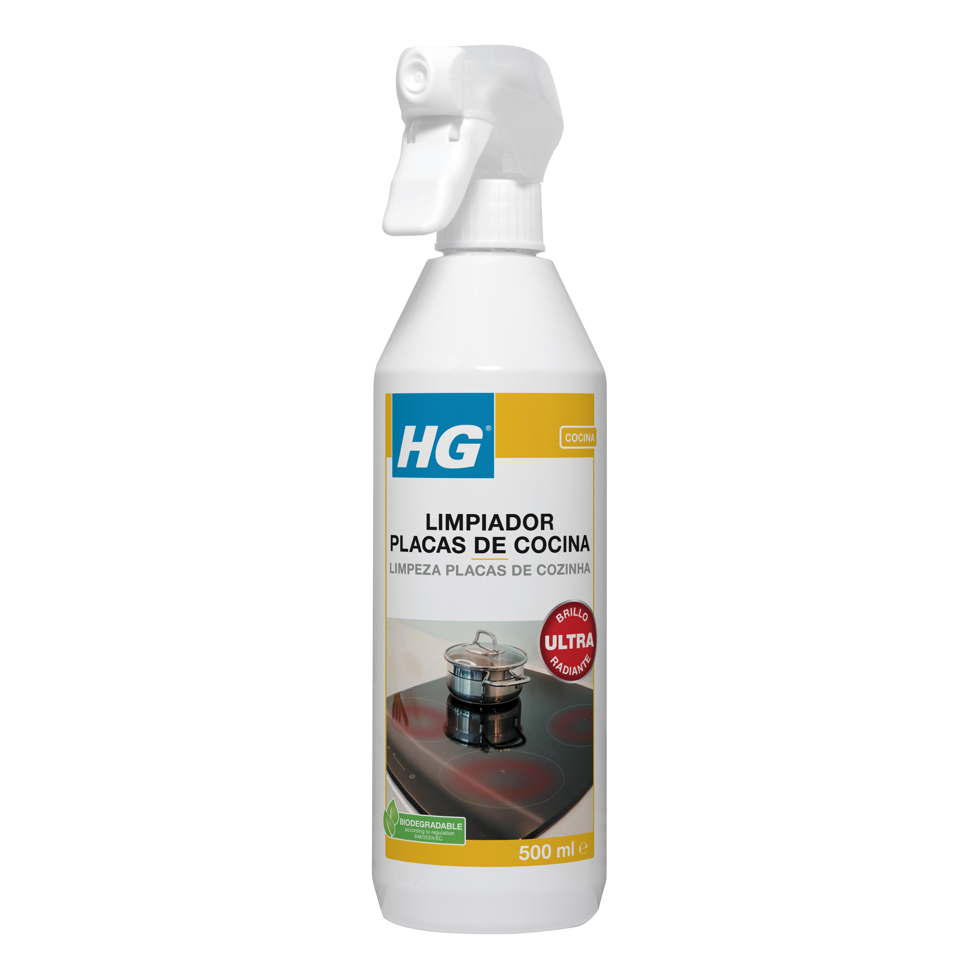 Limpeza de placas vitrocerâmicas HG de 500ML Espalhe o spray umas quantas vezes sobre a placa e deixe actuar. Limpe com um pano húmido e depois seque com um pano ou papel de cozinha. Para todo o tipo de placas de vitrocerâmica, indução e gás. O produto de limpeza remove facilmente a sujidade diária, assim como gordura e calcário, e evita a formação de sujidade intensa de difícil remoção.