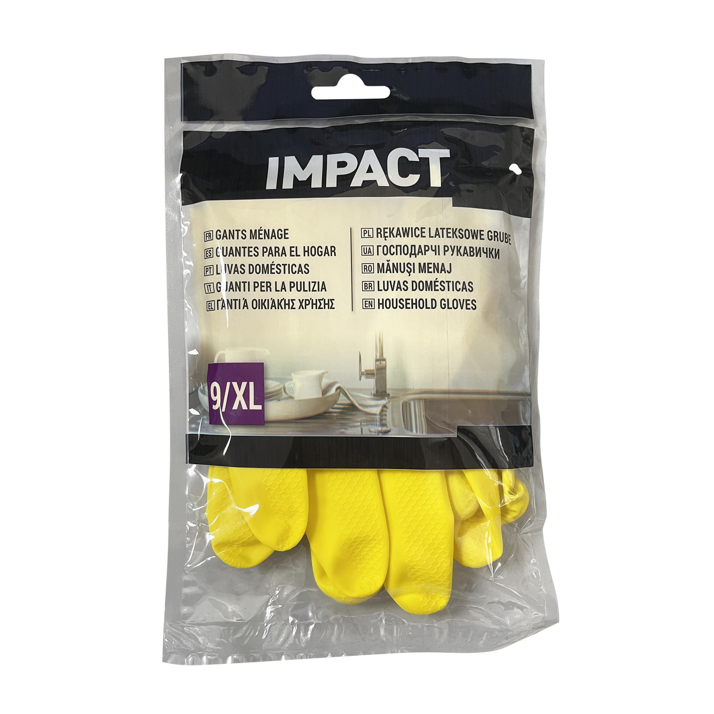 Luvas de limpeza IMPACT em látex, tamanho XL, ideais para todas as suas tarefas domésticas diárias: lavar louça, limpar, etc. Reforçadas e reutilizáveis.