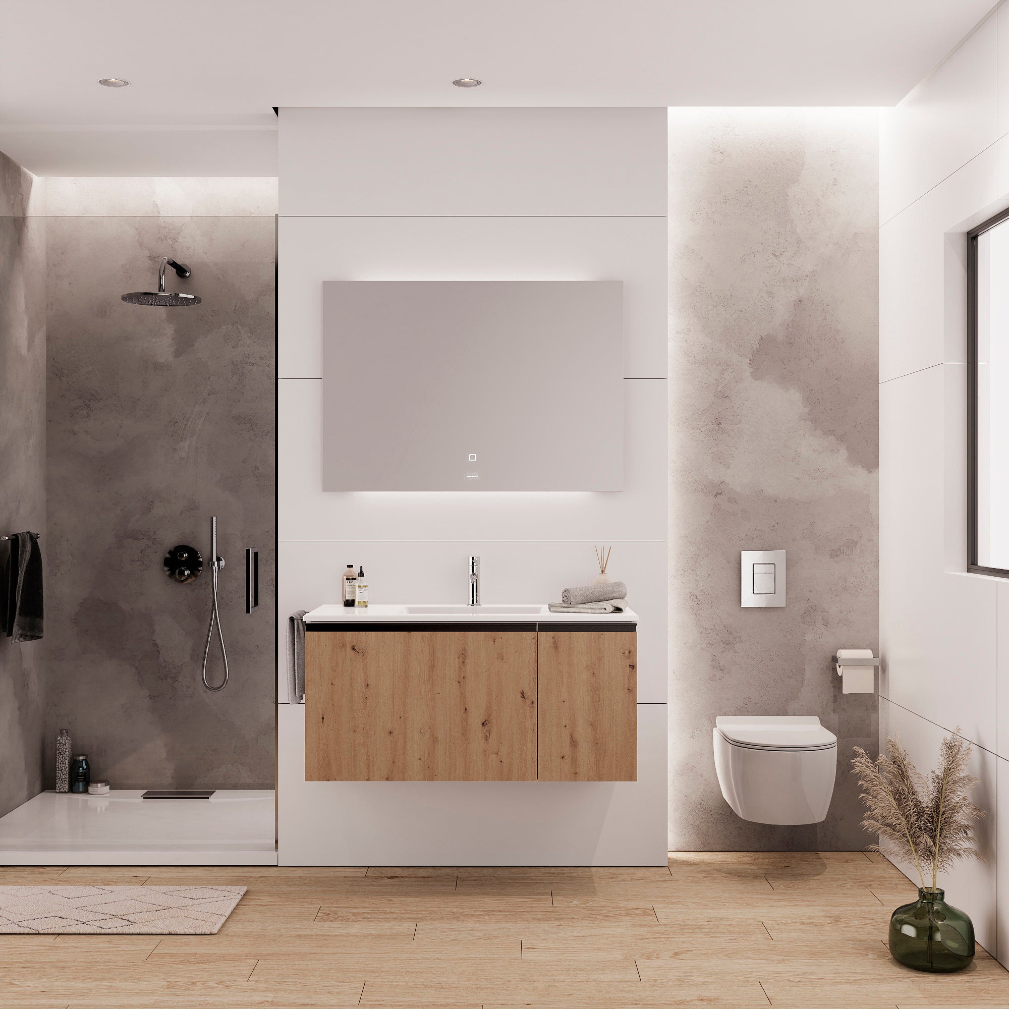 Móvel casa de banho suspenso 2 gavetas 1 porta branco carvalho 100X45X48cm Mlife