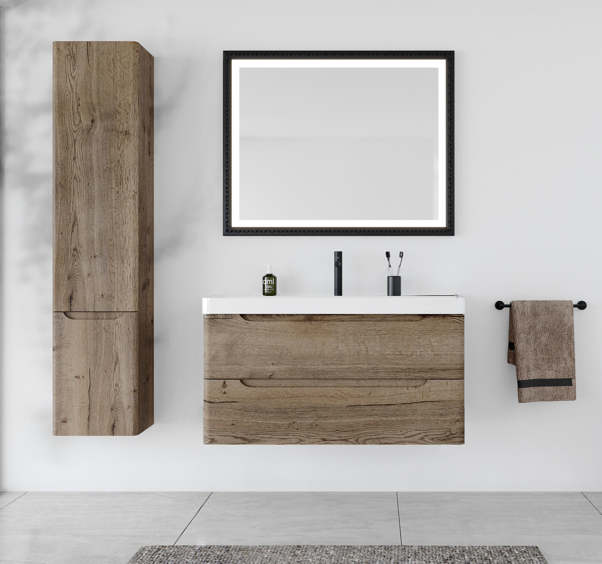 Móvel de casa de banho 2 gavetas 100X46X54 cm carvalho Aml Jota