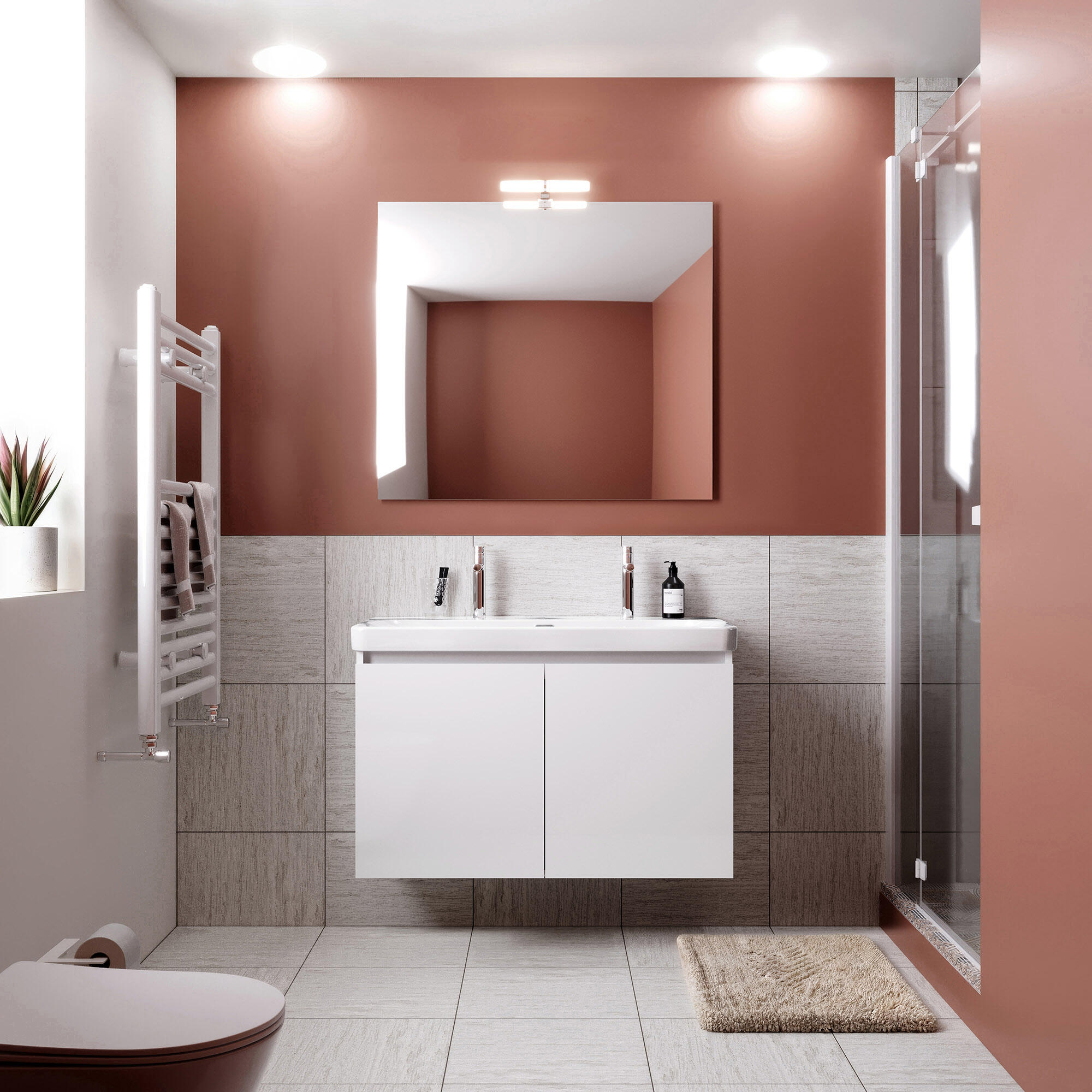 Móvel de casa de banho suspenso 2 portas 90x48x55 cm branco AML Remi