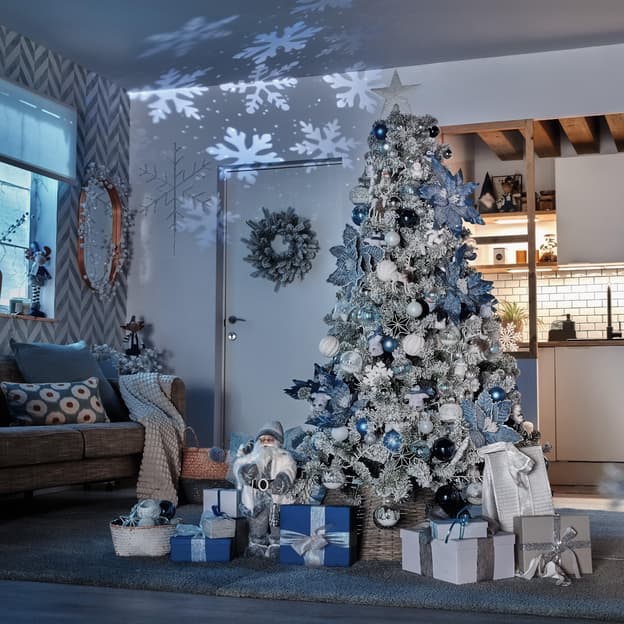 Depois de encontrar a sua árvore favorita, aproveite para adorná-la com decorações de árvores de Natal, como um sofisticado conjunto de bolas de Natal de cor branca ou, em alternativa, algo mais ousado, como bolas azuis.