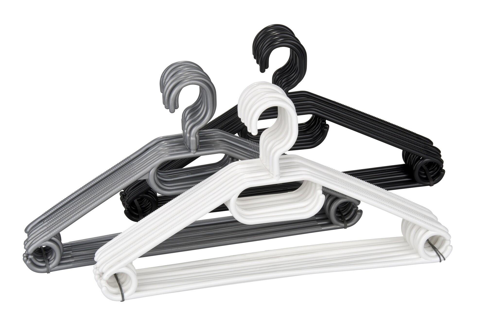 Pack 10 cabides com gancho plástico branco/preto/cinza sortido