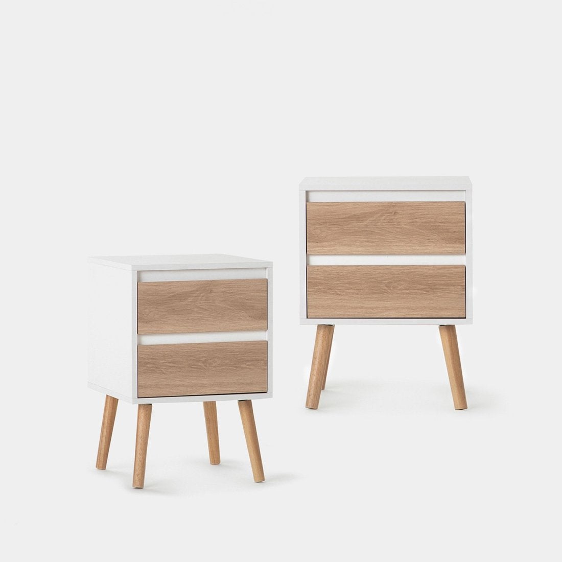 Pack 2 mesas de cabeceira com 2 gavetas cor branco e natural Kemi