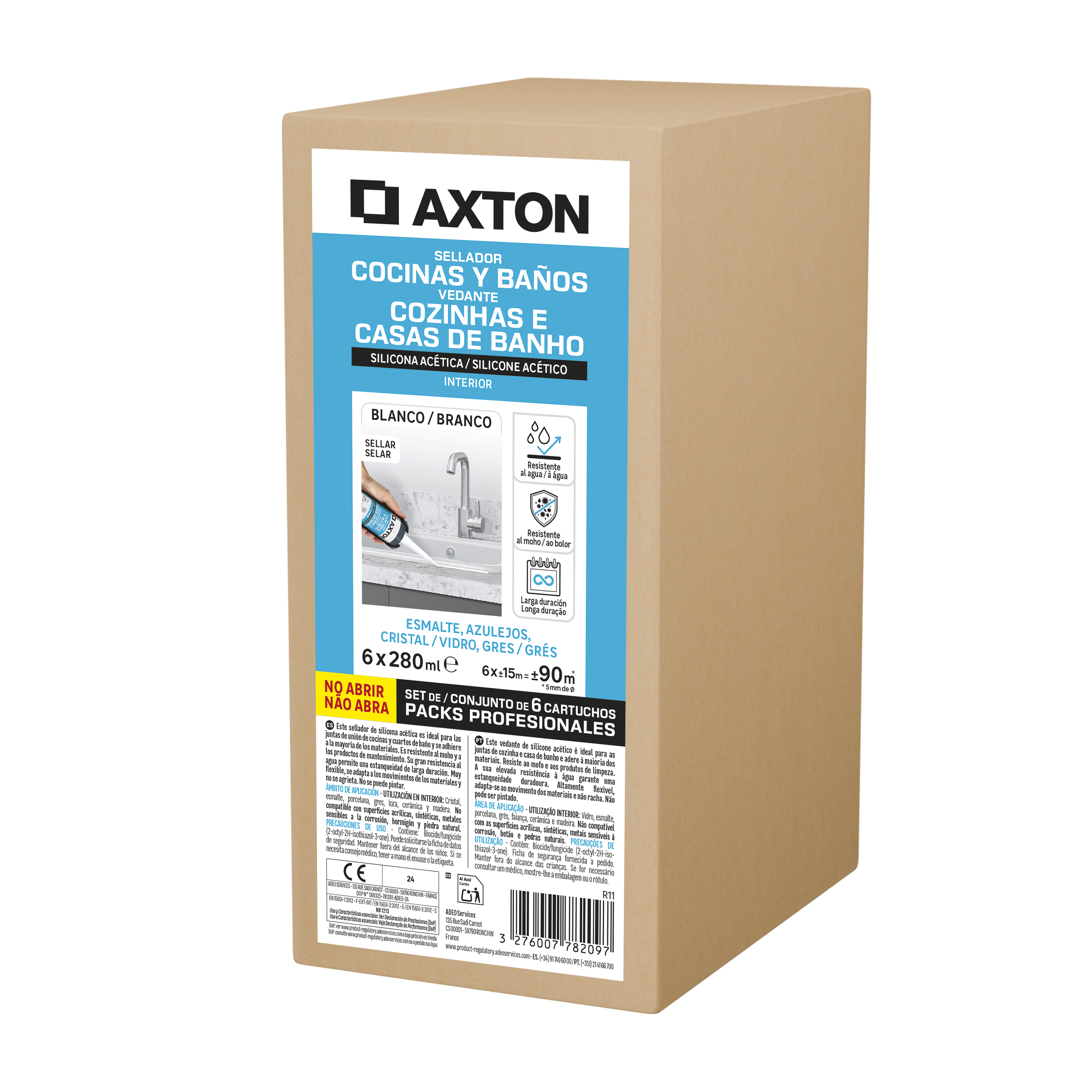 Pack 6 silicones cozinha casa banho acético antifungos 280ml branco Axton