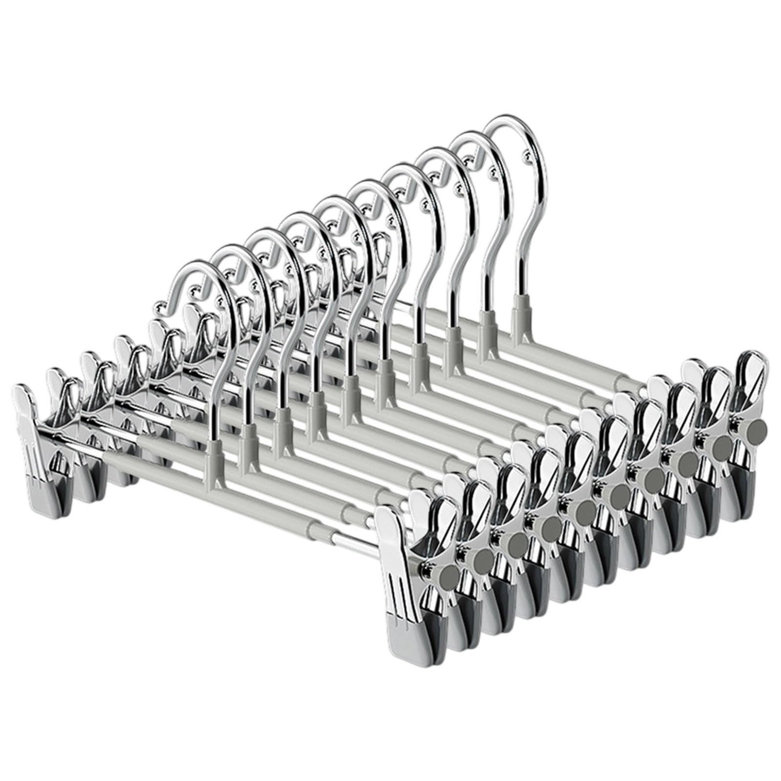 Pacote com 10 Cabides para Calças com Mecanismo Deslizante, Cabide Ajustável para Saia, Cabide Antiderrapante para Jeans, Cabide para Calças, Cinza