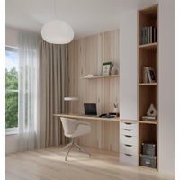 Painel ripado en madeira maciça de pinho com fundo branco 240 x 13, revestimento de parede decorativo que oferece várias utilizações (cabeceira de cama, quadro decorativo, painel de parede, etc.) Fácil de instalar com sistema de encaixe. Cada embalagem contém 5 peças para cobrir uma área de 1,605 m²