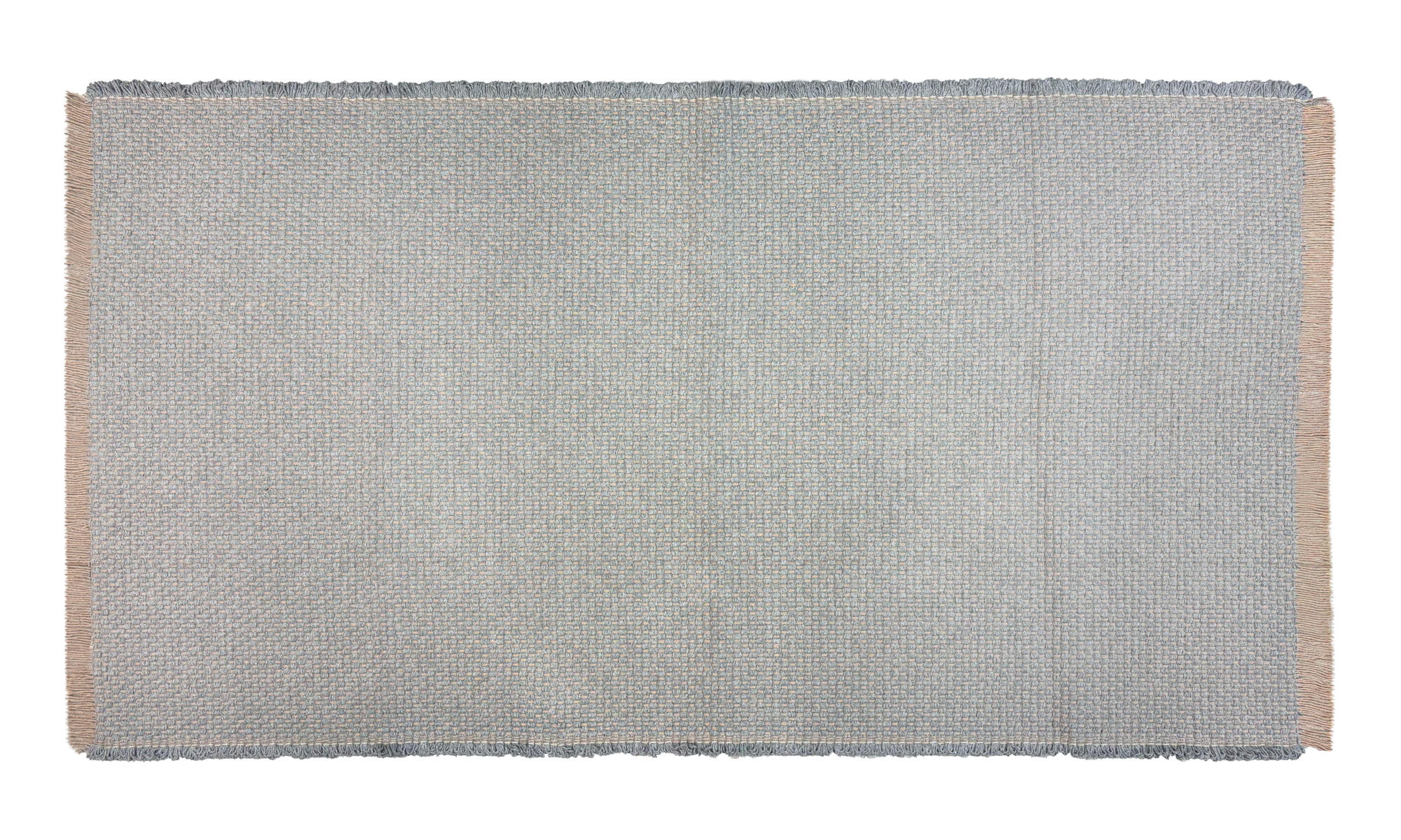 O tapete Baleal é fabricado em Portugal feito com 100% algodão, apresentando um design contemporâneo que combina um fundo de cor lisa com um delicado padrão de linhas transversais em tons contrastantes.