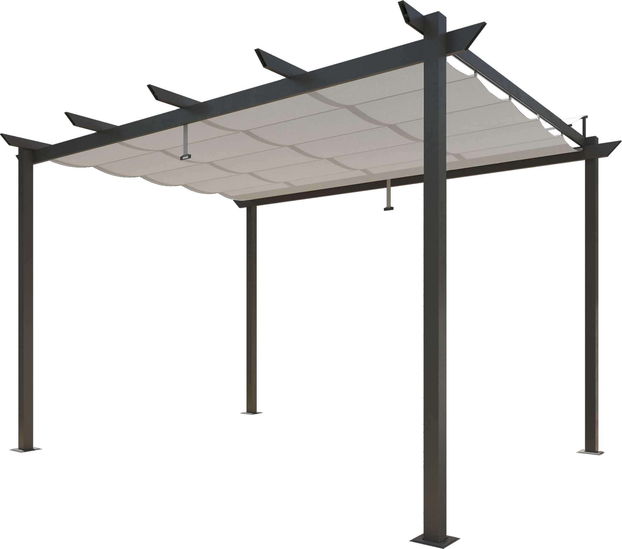 Sob o sol, desfrute do seu terraço abrigado sob a Pérgola Omega. O seu toldo com tratamento anti-UV pode ser ajustado para atender a todas as suas necessidades.