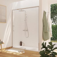Porta de duche correr 1 porta 1 fixa 160 x 195 cm serigrafado cromado Sensea Remix