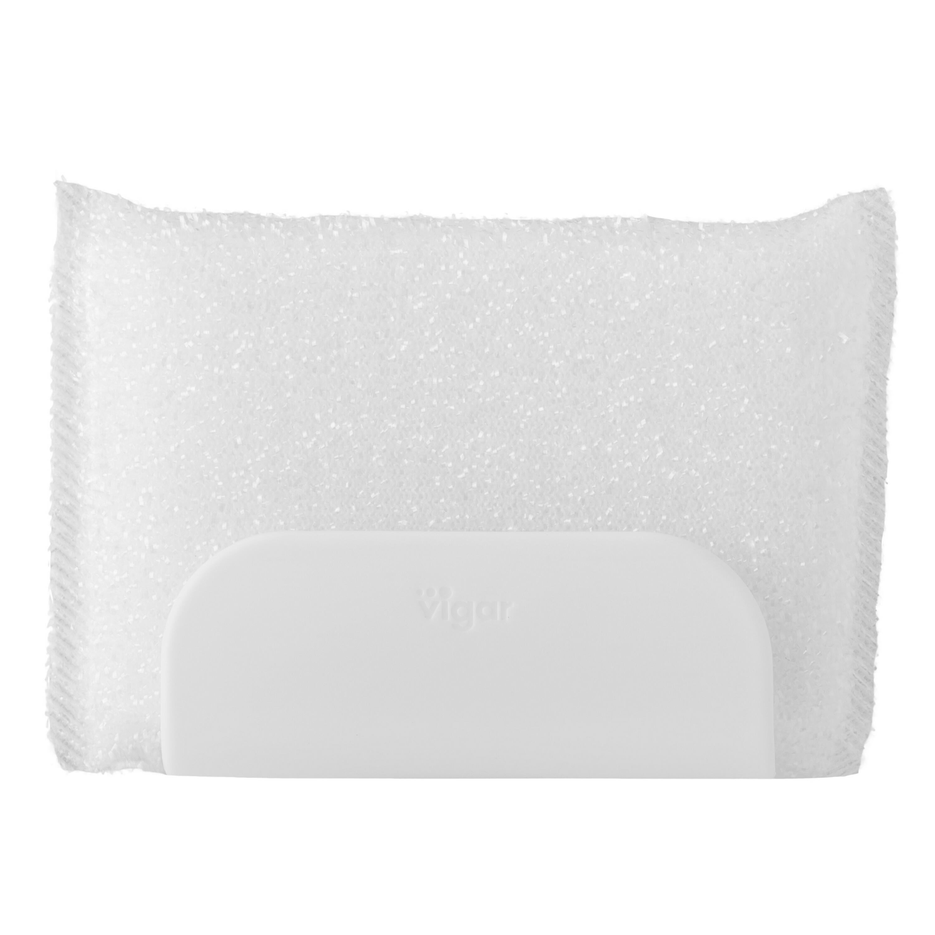 Porta-esponja com ventosa para pendurar na parede da cozinha ou na pia e ter sempre à mão. Material de plástico na cor branco, com 5 cm de largura e 9.5 cm de altura, sua profundida é de 13 cm.