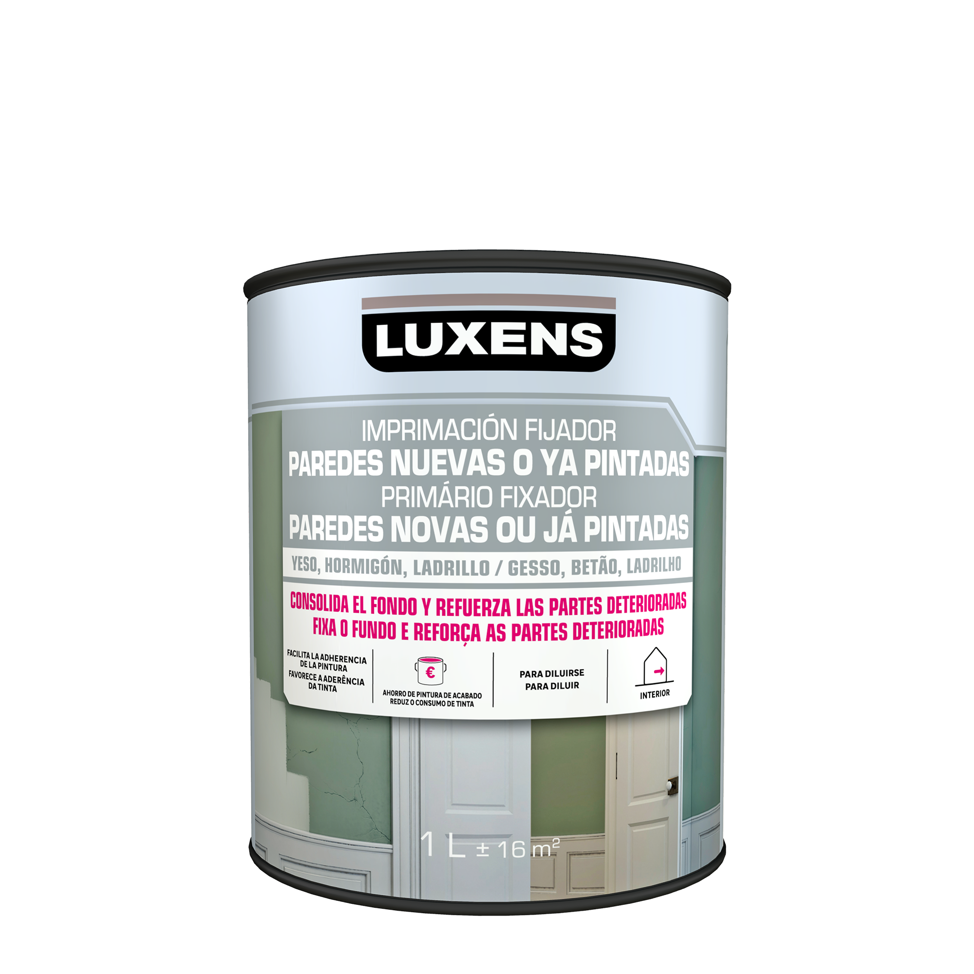 Primário fixador acrílico incolor Luxens, a ser diluído, é ideal para preparar as suas superfícies interiores friáveis, pulverulentas e deterioradas (gesso, betão, ladrilho) antes de pintar, mas também paredes novas. O seu poder de cobertura permite poupar na pintura e o seu poder de fixação favorece a aderência à parede. Graças à sua fórmula, este primário bloqueia o base. A sua baixa viscosidade fortalece e promove a consolidação das peças danificadas.
