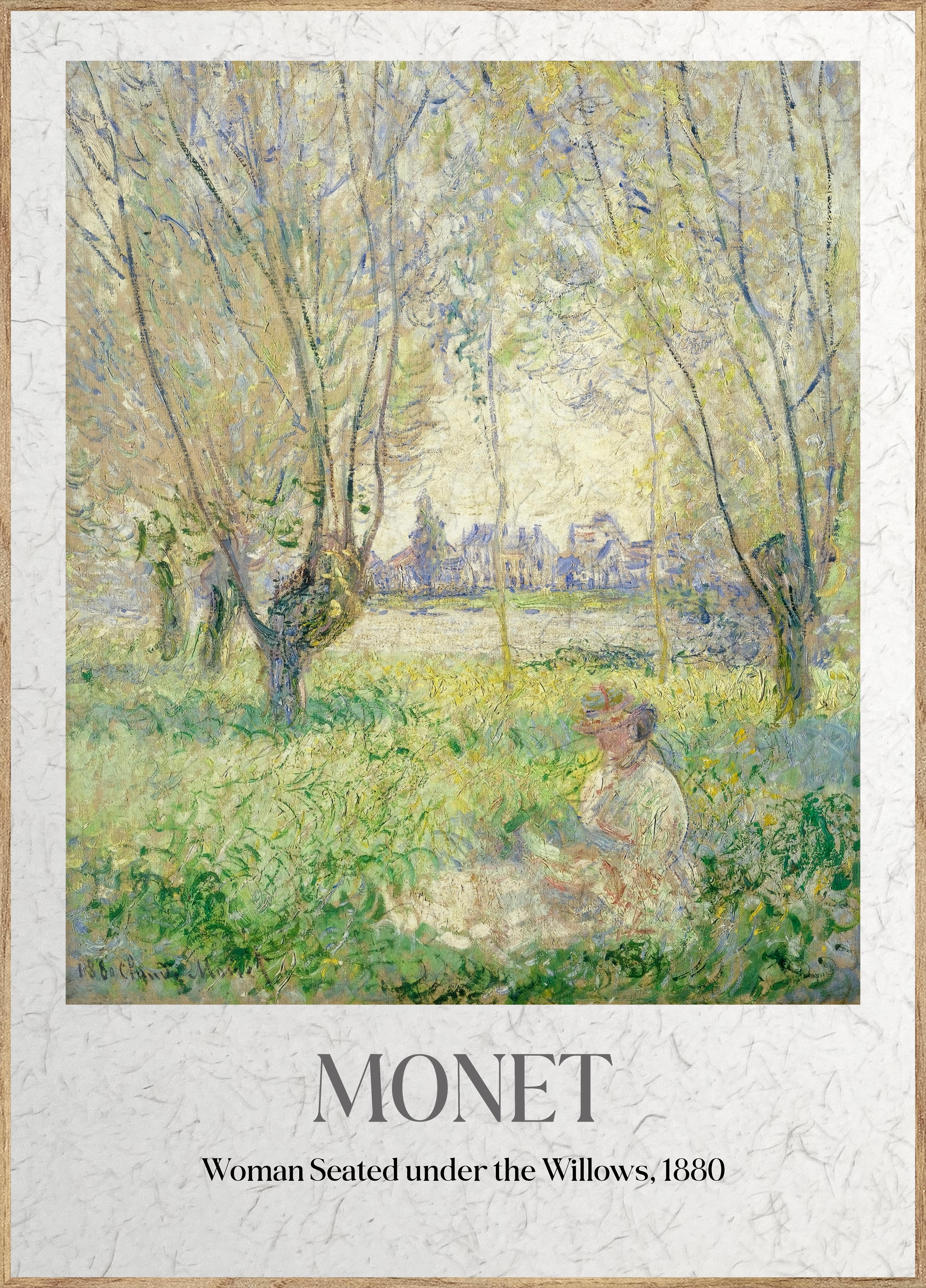 Quadro com moldura decoart 25mm na cor faia G tostada com um design do quadro "Woman Seated under the Willows" de Monet. Medida 50x70cm interior.