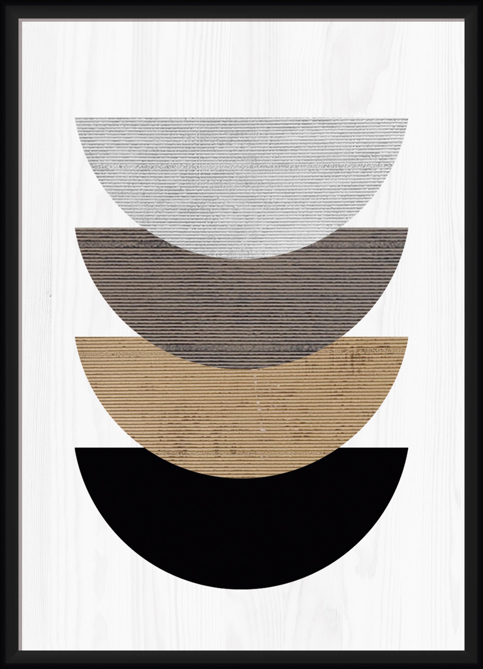 Quadro decoline emoldurado na cor preta. Design em formas de meia-lua em diferentes tons e relevo. Medida 50x70cm interior. Ideal para decorar qualquer ambiente da casa.
