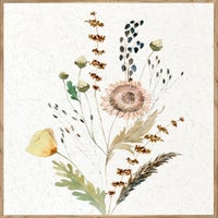Quadro com moldura BCN 20mm na cor faia com um design de flores secas em tons marrons sobre fundo de linho. Medida 40x50cm interior
