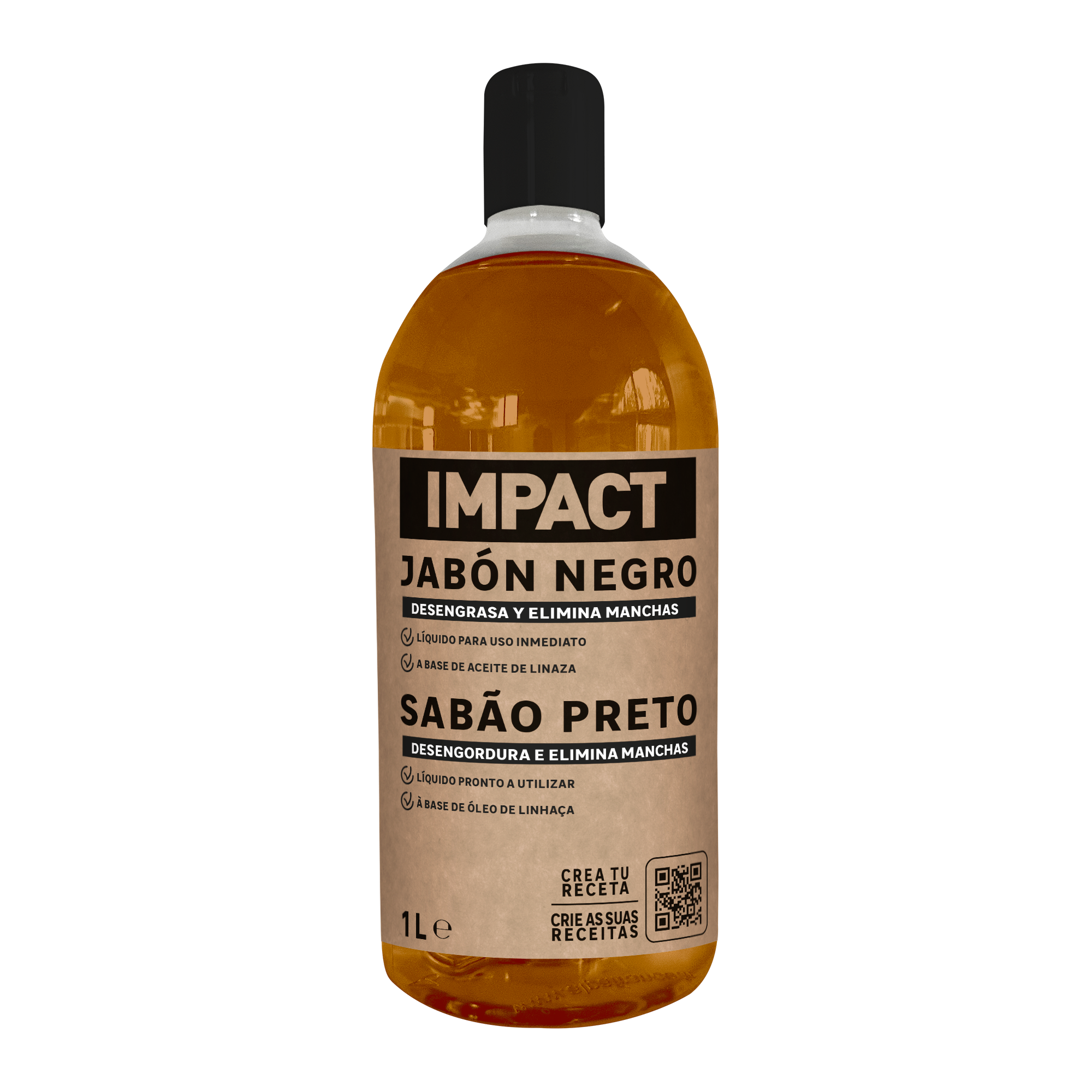 O sabonete preto Impact à base de óleo de linhaça é um produto doméstico essencial. Concentrado e multifuncional, limpa, desengordura, mancha, nutre e dá brilho a todas as superfícies. Por exemplo, permite desengordurar o forno, limpar o chão ou polir cobre e talheres. Combine-o com Impact Cristais de soda para fazer um limpador formidável