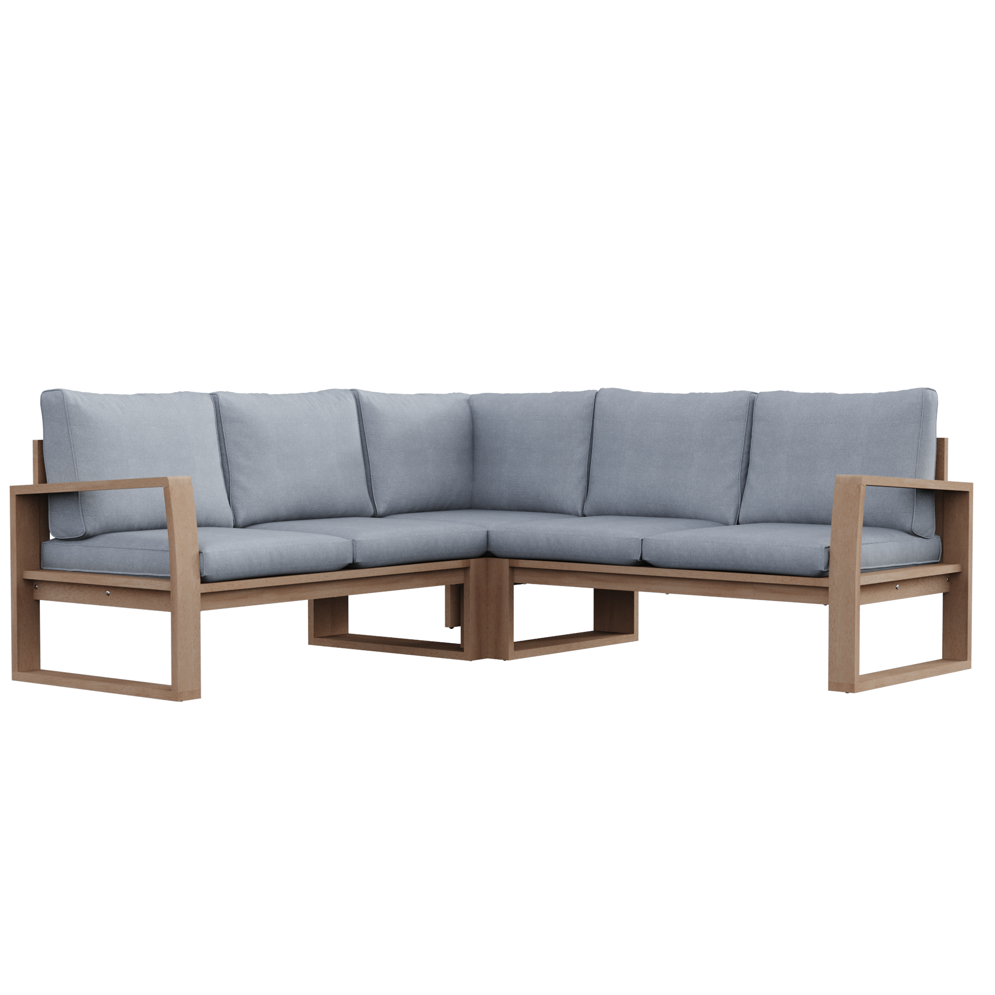 Compartilhe uma confortável noite de verão no sofá de canto Solaris! O seu design em madeira de acácia, proveniente de uma gestão florestal amiga do ambiente, oferece ao seu jardim um estilo natural e acolhedor. O conforto de muitos Perfeito para desfrutar de um dia de sol, o sofá de canto Solaris é espaçoso e acomoda até 5 pessoas para uma refeição de convívio. Com as suas grandes dimensões, permite-lhe desfrutar de uma posição agradável e também de um amplo espaço onde pode relaxar. Macias, as almofadas cinzentas do assento e do encosto são feitas de poliéster para garantir um elevado nível de conforto. Os tecidos de poliéster são tratados com anti-UV e repelente à água, o que retarda o desbotamento e permite limpar imediatamente manchas acidentais. Inspirado na natureza, o sofá de canto Solaris é feito de um material natural: madeira de acácia proveniente de florestas certificadas pela sua gestão responsável e sustentável. Semelhante à teca, esta madeira exótica é estética e resistente às variações climáticas como vento ou umidade. Um design natural O sofá de canto Solaris confere aos seus espaços exteriores um carácter autêntico. Geometricamente desenhados, os braços e as pernas se encontram em formato de “U” aberto e arejado. A simplicidade das linhas lembra o estilo natural que deu origem ao sofá de canto Solaris. Elegante e limpo, pode ser facilmente combinado para dar ao seu pátio uma aparência aconchegante e crua. Combine-a com a mesa alta da mesma série para partilhar as suas refeições, ou com a mesa de centro Solaris, para colocar os seus aperitivos. Dicas de manutenção Para preservar o seu sofá de canto Solaris, recomenda-se protegê-lo durante longos períodos de inatividade. Da mesma forma, as almofadas são totalmente removíveis e devem ser protegidas da umidade quando não estiverem em uso. Recomenda-se também nutrir a madeira uma ou duas vezes por ano com óleo de teca ou linhaça. Para preservar a cor e evitar que fique cinza, pode-se usar um limpador de madeira. Por fim, é recomendado apertar os parafusos do seu conjunto uma vez por ano, devido à natureza viva da madeira. Sua vantagem ambiental? A acácia é um material vivo, 100% reciclável. É certificada a partir de florestas cuja gestão é reconhecida como responsável e sustentável em três áreas: social, ambiental e económica. Perante os alertas ambientais ligados à desflorestação, uma organização independente controla a rastreabilidade dos produtos através de uma rigorosa política madeireira para garantir a sua origem legal e responsável. Com sede no Vietnã, nosso fornecedor está comprometido desde 2009 no processo de certificação e construiu parcerias sustentáveis com subcontratados e fornecedores locais.
