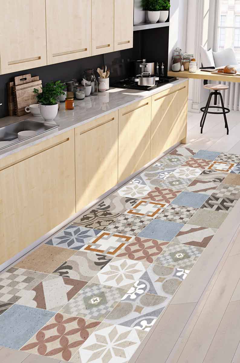 Tapete de vinil Azulejos vintage 3 66x100 cm - PVC antiderrapante, vinílico para cozinha ou sala, lavável, estilo hidráulico