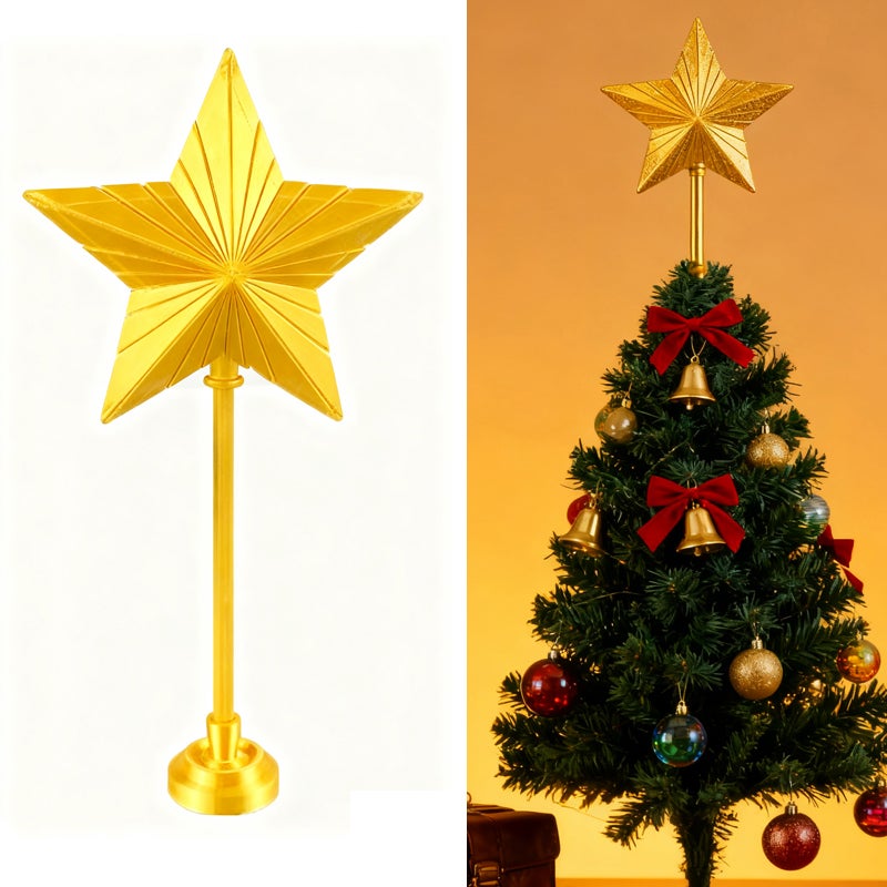 Topo de Árvore de Natal Iluminado Estrela, Topo de Árvore de Natal, Luz Quente, para Festas de Natal e Ano Novo, 32 x 16 x 5,5 cm - Dourado