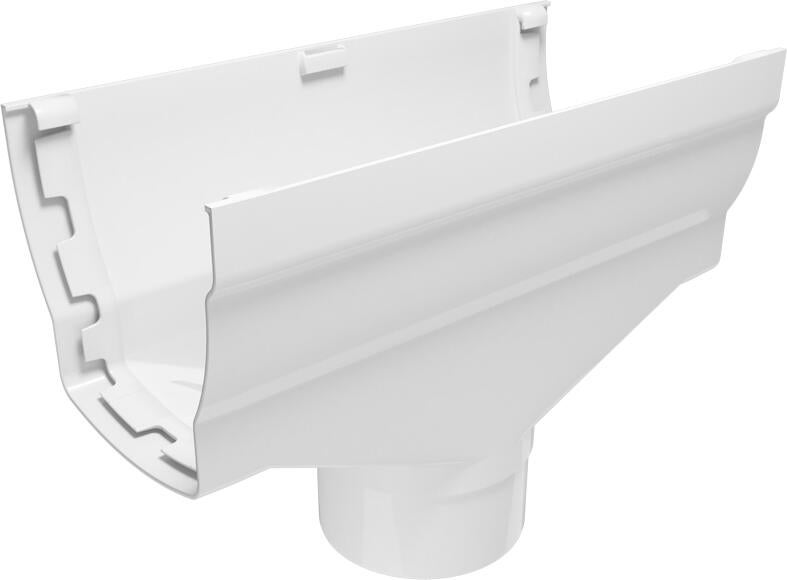 União central para calha estilo elegance. Fabricada em PVC com formato quadrado e em branco. O diâmetro da calha e do tubo de drenagem é de 80 mm.