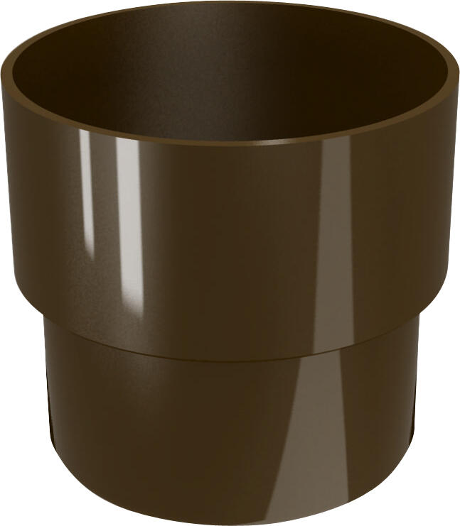 União em PVC castanho, com formato redondo. Tem um diâmetro de 80 mm.