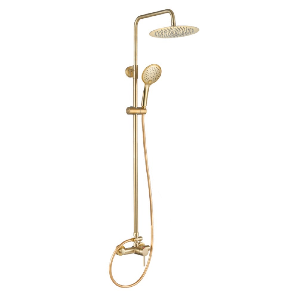 Valaz Barra de chuveiro redonda com alavanca única ajustável até 120 cm, ouro escovado - Série Ebro - 25 cm