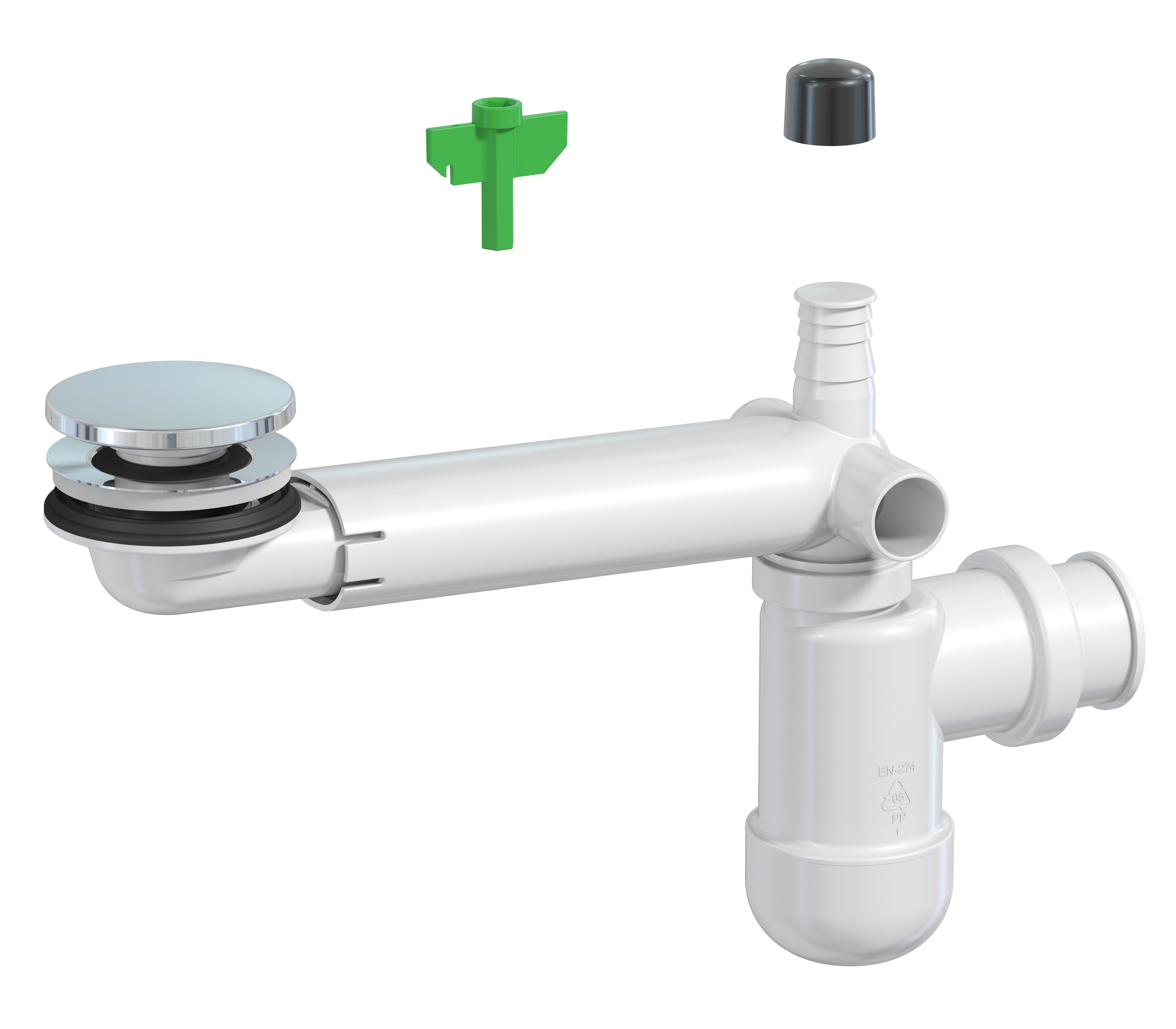 "Conjunto de escoamento válvula clic clac acabamento cromado e sifão economizador de espaço Equation, ideal para um lavatório de casa de banho. Concebido para otimizar o espaço num móvel de casa de banho, permite a ligação a um escoamento com 32 mm ou 40 mm de diâmetro. A altura e a profundidade são facilmente ajustáveis. Possui uma ligação adicional para uma máquina de lavar roupa e um transbordamento. Garante uma rápida evacuação da água. Este produto Equation está empenhado na preservação dos recursos do nosso planeta, utilizando materiais reciclados no seu fabrico, e tem uma garantia de 5 anos. "