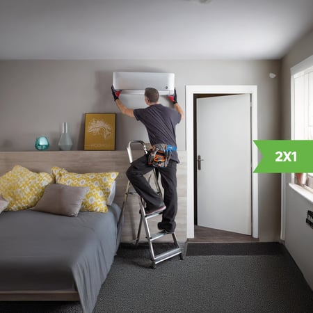 É preciso fixar a unidade interior na parede e a unidade exterior fora de casa. Depois, liga-se tudo com tubos e cabos. A instalação deve ser feita por um técnico especializado.
